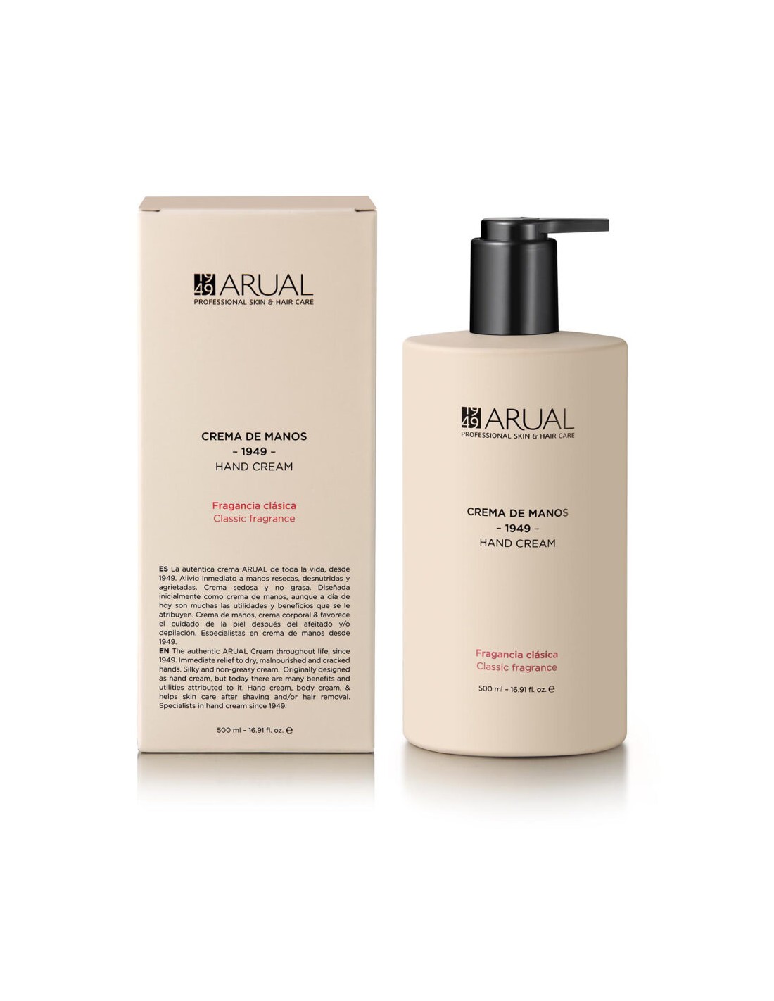 Hemos ido innovando el packaging a lo largo de los años, pero seguimos fabricando con la fórmula original. La auténtica crema ARUAL de toda la vida, desde 1949. Alivio inmediato a manos resecas, desnutridas y agrietadas. Crema sedosa y no grasa. Diseñada inicialmente como crema de manos, aunque a día de hoy son muchas las utilidades y beneficios que se le atribuyen. Algunas de ellas son: crema de manos, crema corporal & favorecer el cuidado de la piel después del afeitado y/o depilación. Especialistas en crema de manos desde 1949. Fragancia clásica.
