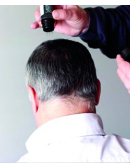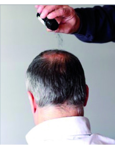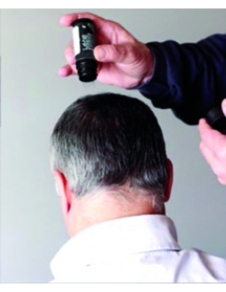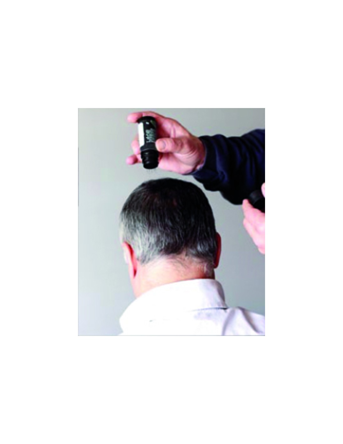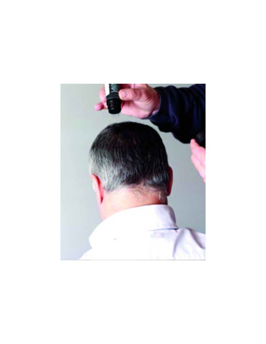 - Agitar el envase suavemente encima de las áreas con escasez de pelo y utilizar el peine para acabar de repartir el producto de forma homogénea.