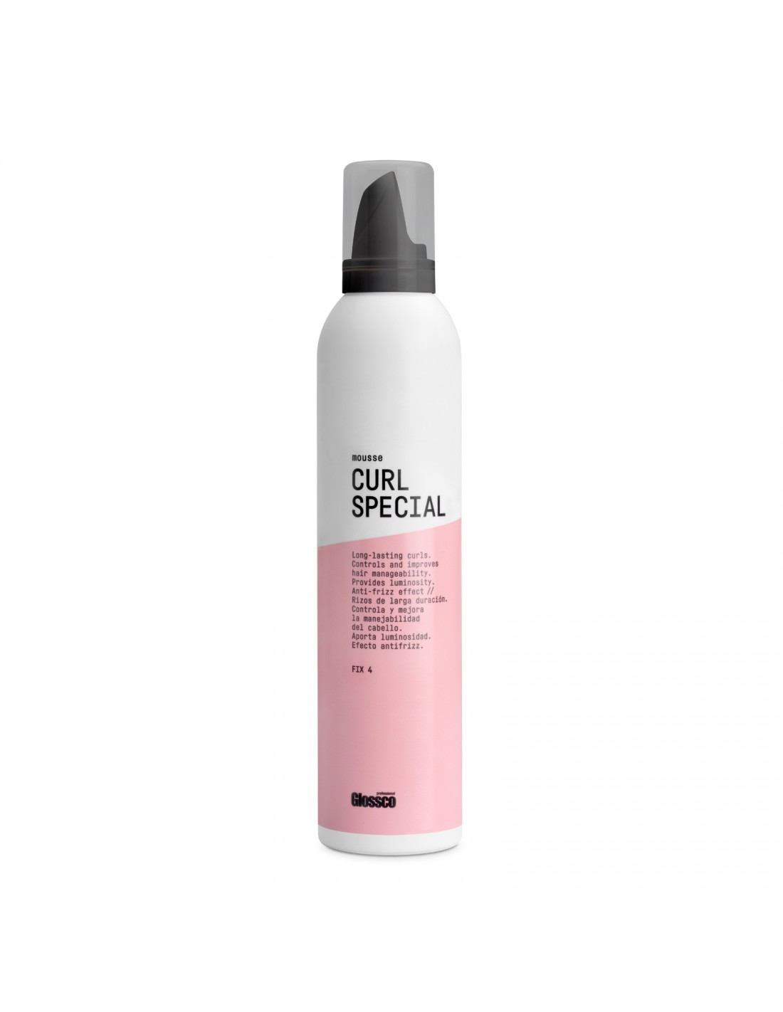 La espuma de rizos de Glossco Professional, controla y mejora la manejabilidad del cabello, aportándole luminosidad y brillo.
