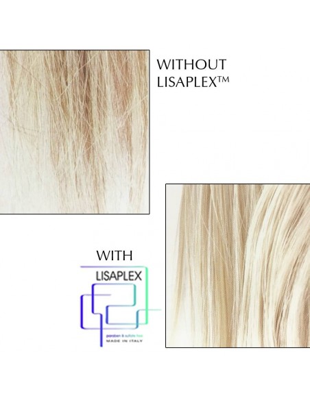 El resultado es un cabello protegido durante los tratamientos de decoloración, provisto de estructura y calidad mejorada. El pelo se recupera y presenta más cuerpo y brillo. Lisaplex aconseja un cuidado diagnóstico antes de cualquier servicio de decoloración.
